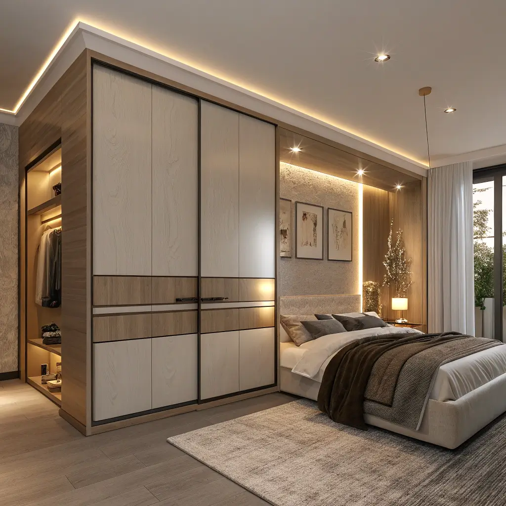 Contemporary designs push boundaries while maintaining functionality. Think asymmetrical panel divisions, mixed materials, and unexpected color combinations. My contemporary wardrobe features panels of different widths – sounds weird, looks amazing.