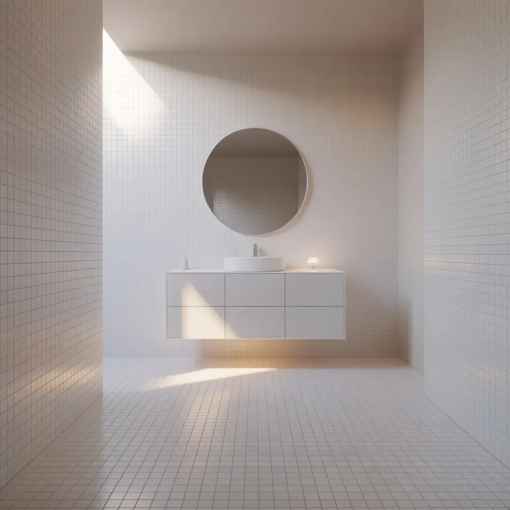 Minimalist White Bathroom with Floating Vanity