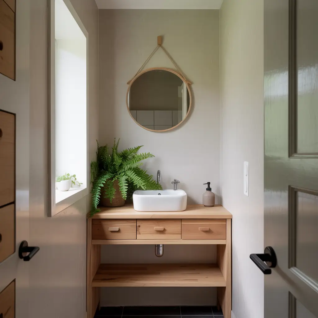 Scandinavian Small Bathroom with Natural Wood Accents