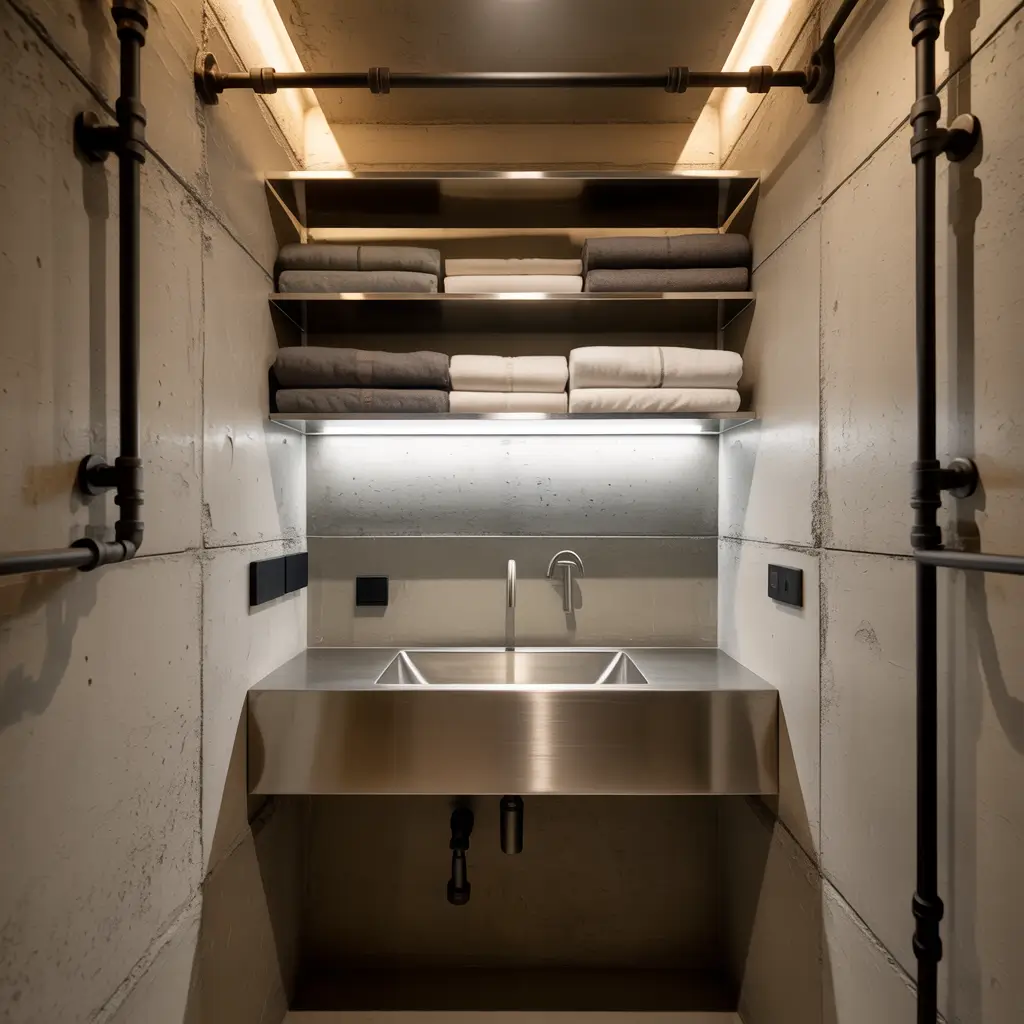 Industrial design in a small bathroom? Absolutely. In fact, embracing those pipes instead of hiding them can save precious space and add serious character. Why box everything in when you can make it part of the aesthetic?