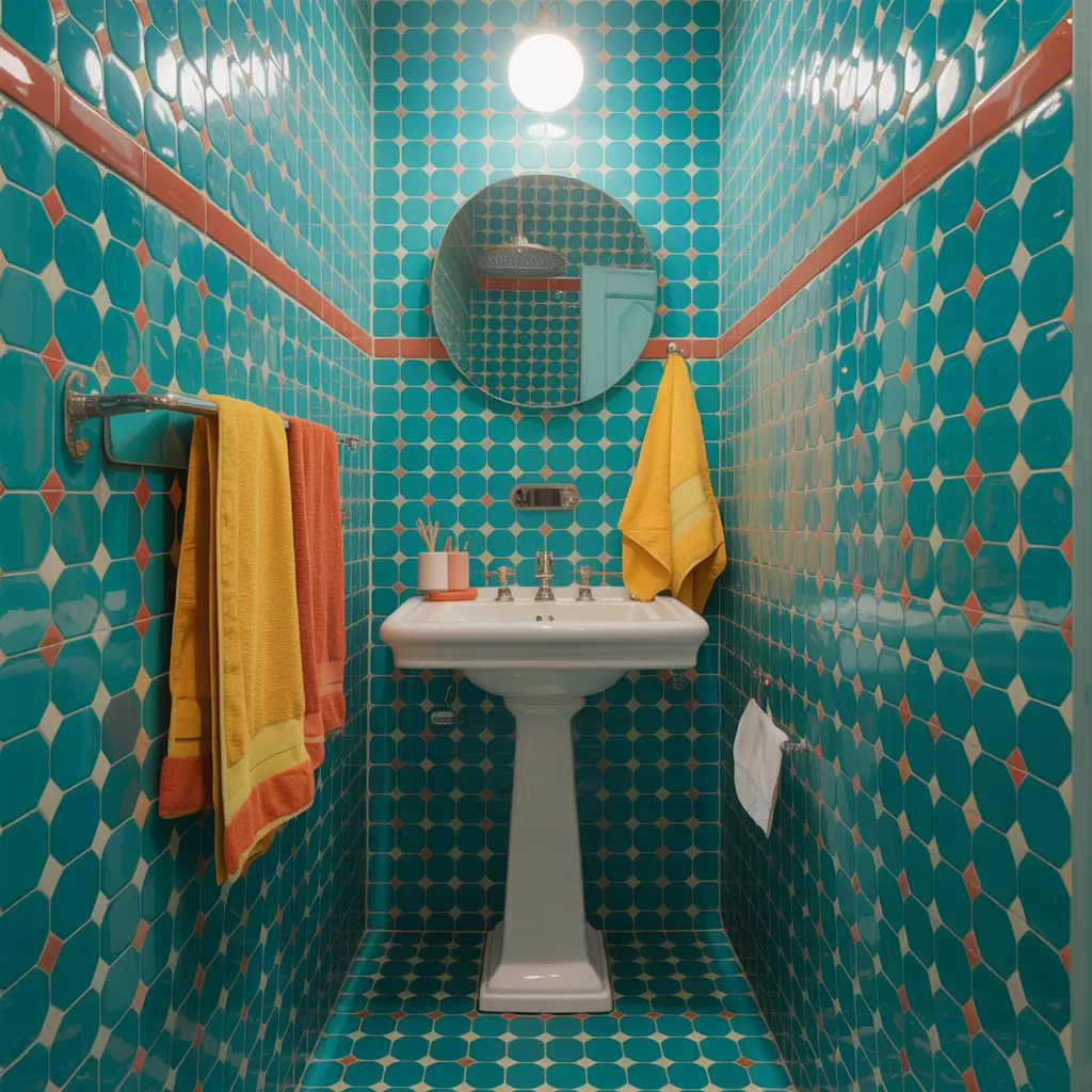 Colorful Small Bathroom with Patterned Tiles