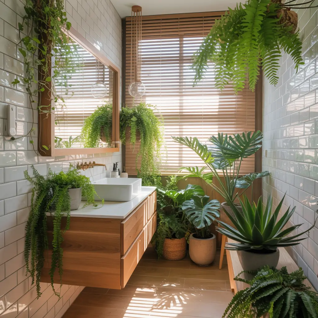 Tiny Bathroom with Indoor Plants and Greenery