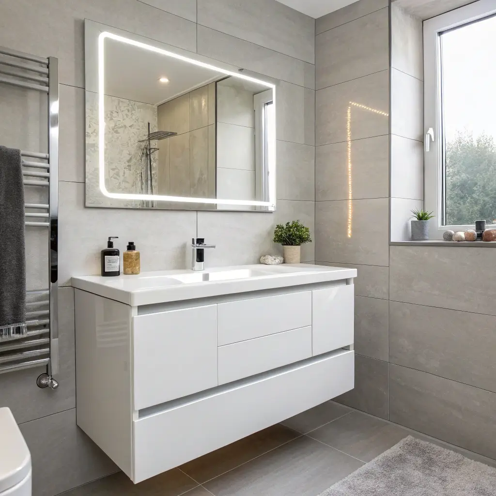 No need for separate sconces eating up wall space or overhead fixtures casting weird shadows. The LED surround provides even, flattering light right where you need it. IMO, this is the smartest upgrade you can make in a tiny bathroom 🙂