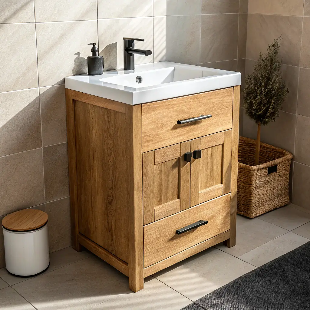 Modern wood vanities ditch the bulky, traditional cabinet look for sleeker profiles with clean lines. Think walnut with hairpin legs, or oak with a live edge detail. They bring nature indoors without the maintenance headaches of the old-school wood vanities our grandparents had.