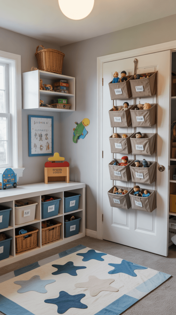 - Verticalize with Hanging Organizers: The back of the door is wasted space. An over-the-door shoe organizer with clear pockets is perfect for storing small action figures, art supplies, matchbox cars, and puzzle boxes. It gets this clutter off the floor and out of sight.