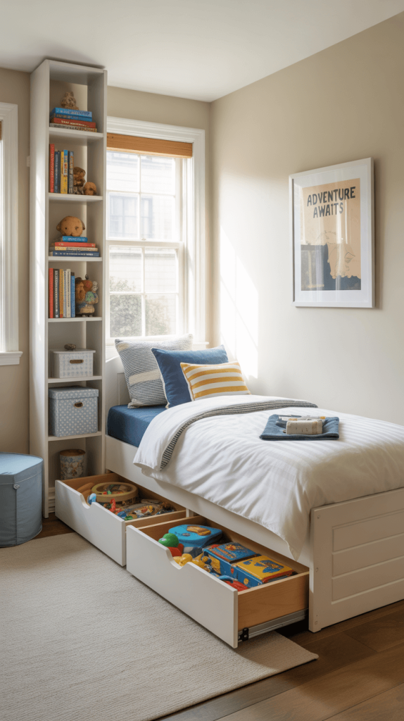If bunk beds are the champions, then smart storage is the MVP. The goal is to banish clutter without sacrificing style or fun. The floor is not a storage option, no matter how convincingly your son argues that it is.