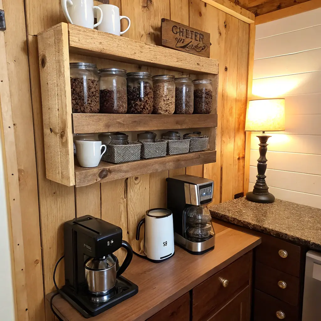 6. Rustic Wooden Coffee Shelf