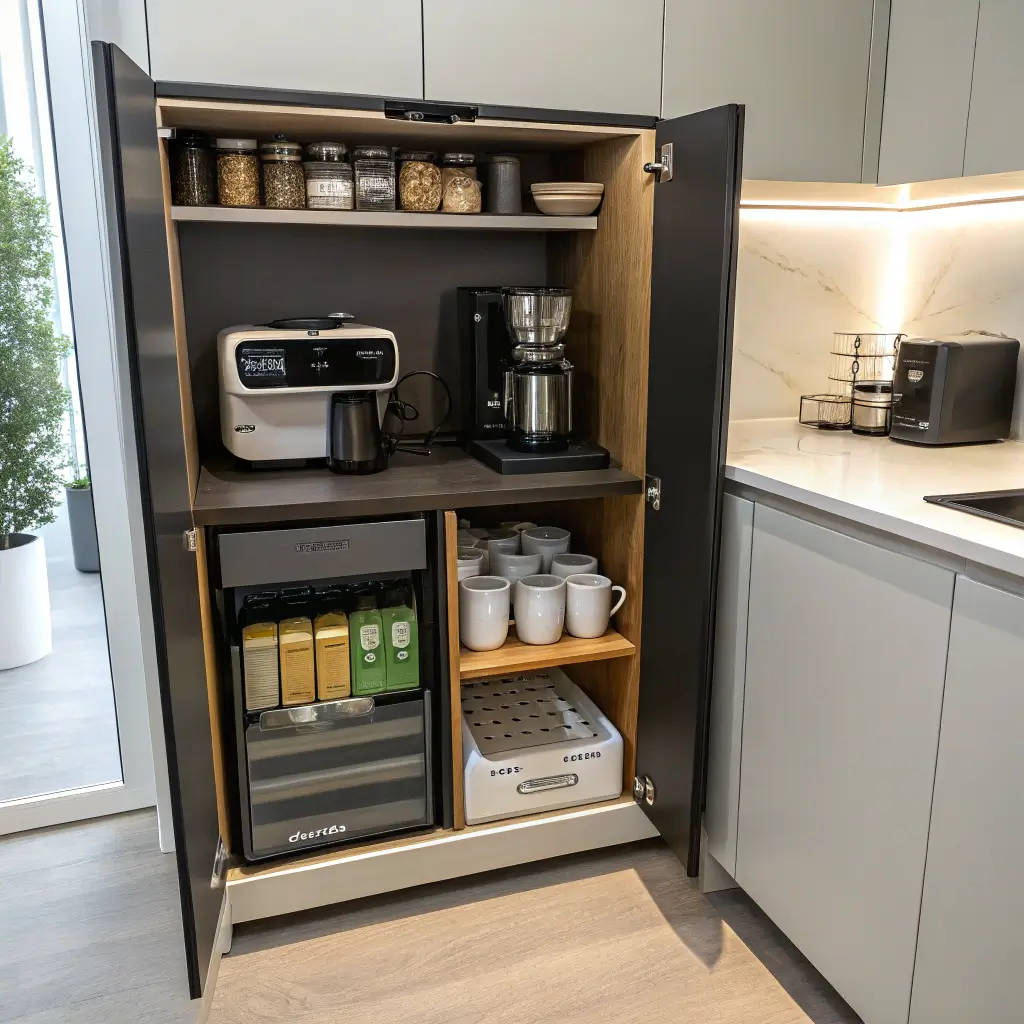 Ever wanted your coffee bar to just disappear when you’re not using it? A hidden cabinet coffee bar makes that dream reality. I created one in my studio apartment where every square foot counts, and it’s been a game-changer for maintaining a clean-looking space.