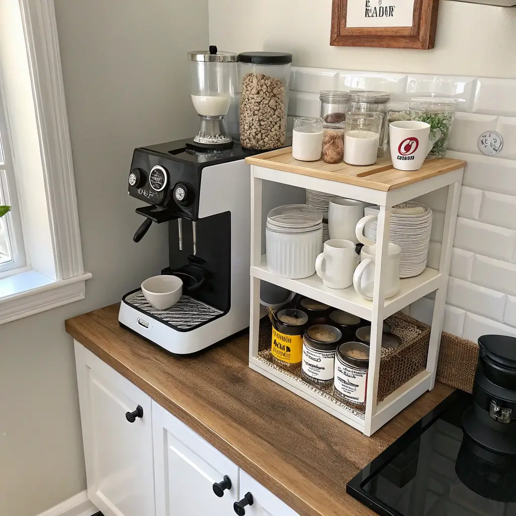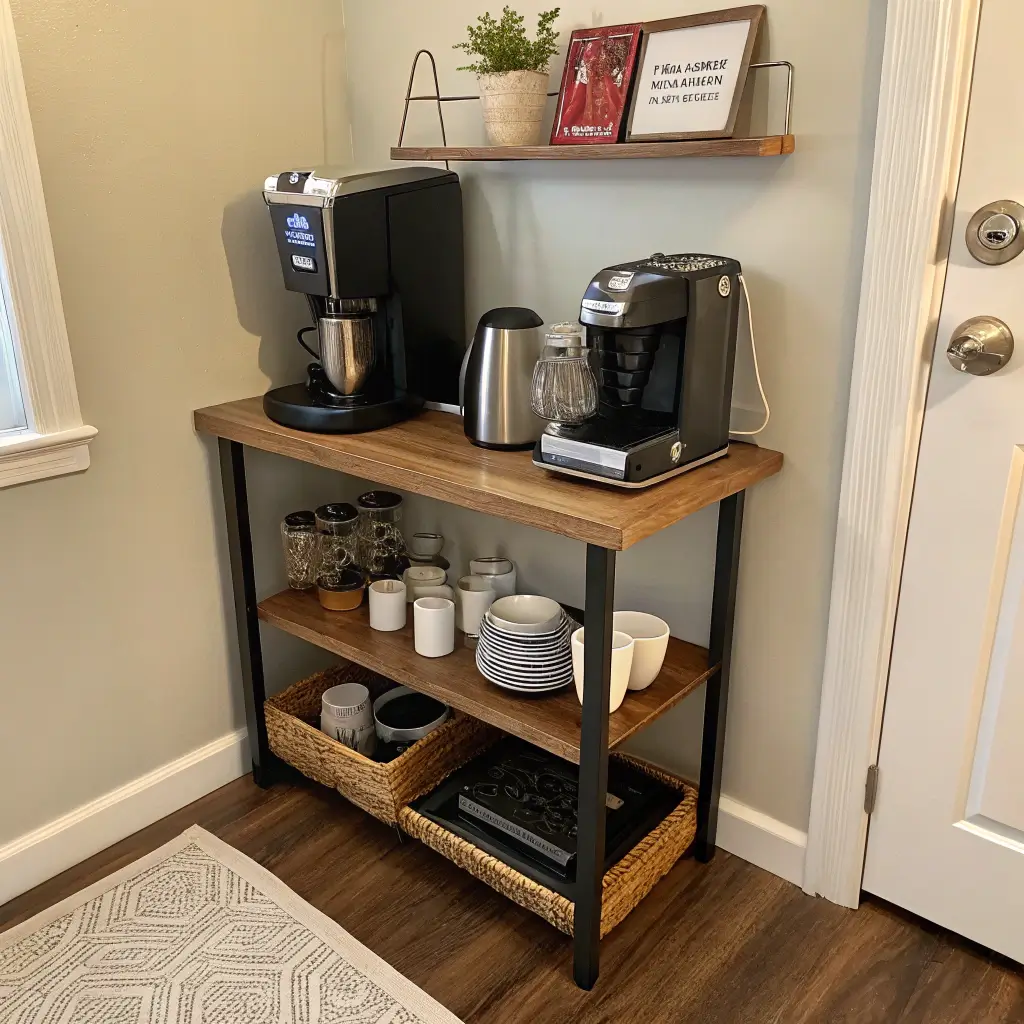 Whether you’re working with a studio apartment or just want to maximize your existing space better, I’ve rounded up 15 small coffee bar ideas that actually work in real life. Trust me, some of these solutions are so clever, you’ll wonder why you didn’t think of them yourself.