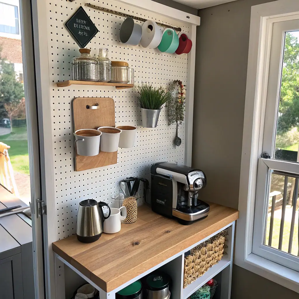 14. Coffee Bar with Pegboard Storage