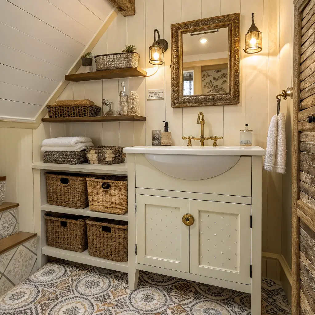 Cozy Vintage Cottage Bathroom with Smart Storage