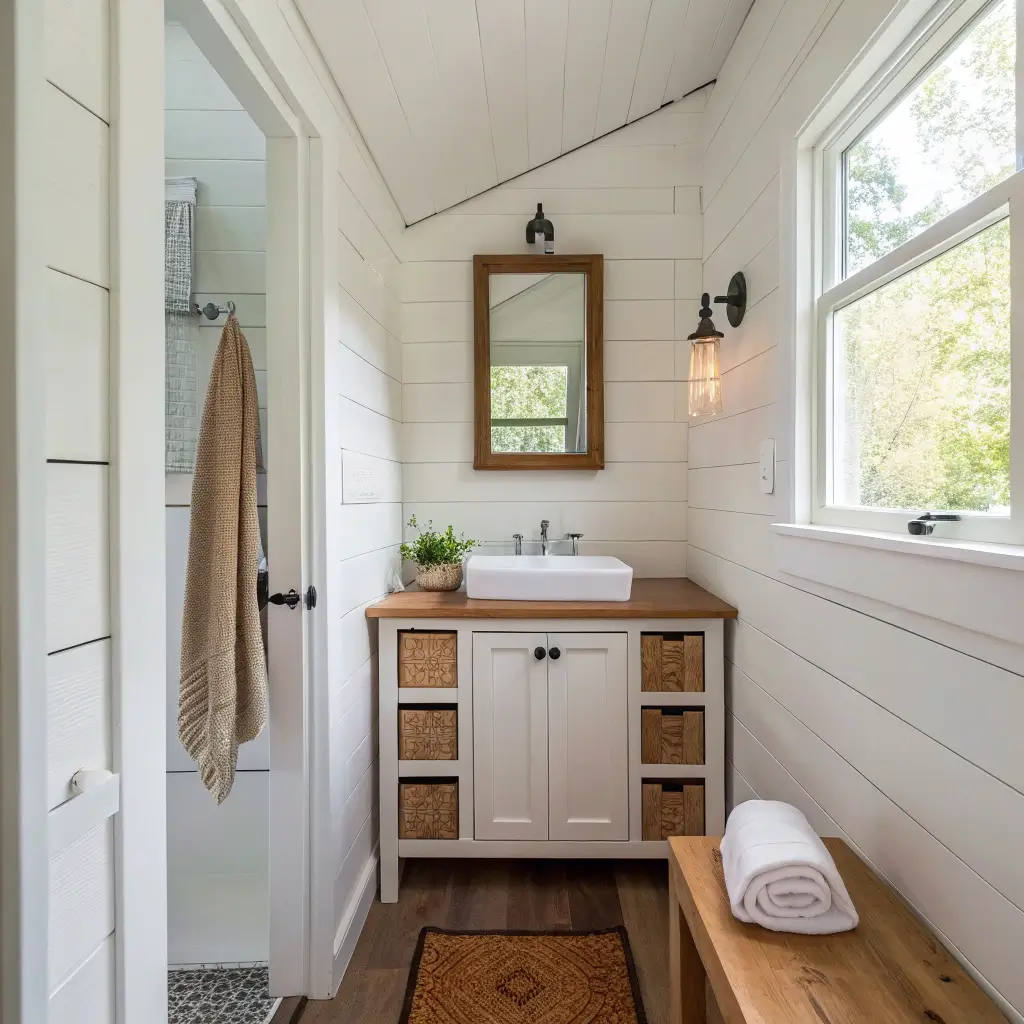 Tiny Cottage Bathroom with Rustic Wood Accents