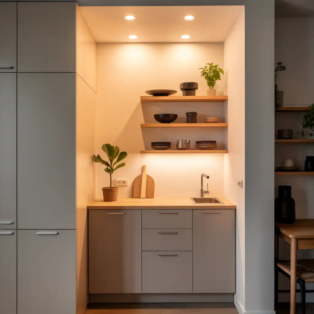 Compact Kitchen with Natural Elements