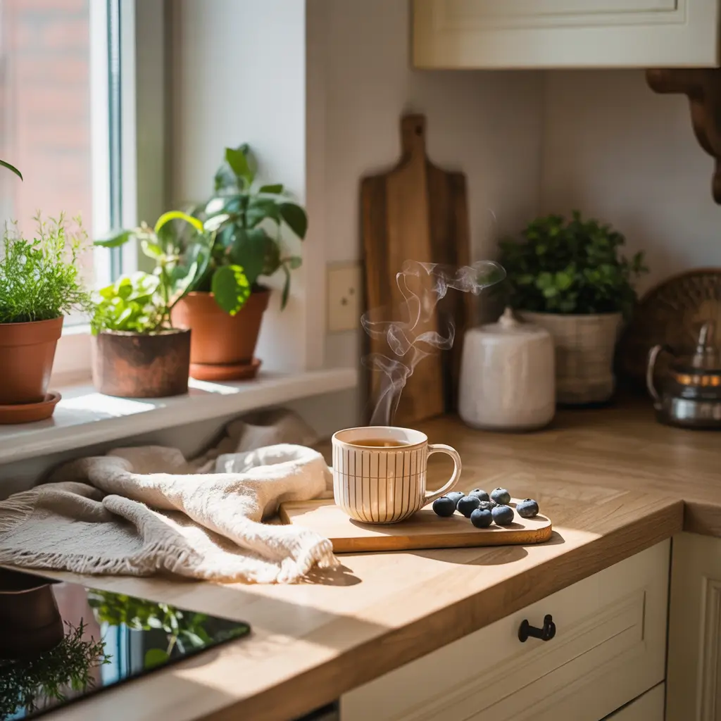Natural materials count too. Swap plastic for wood, bamboo, or cork. Choose linen dish towels over synthetic, display wooden spoons in a crock, and maybe add a jute rug. Your kitchen starts feeling less like a utilitarian box and more like an extension of the outdoors.