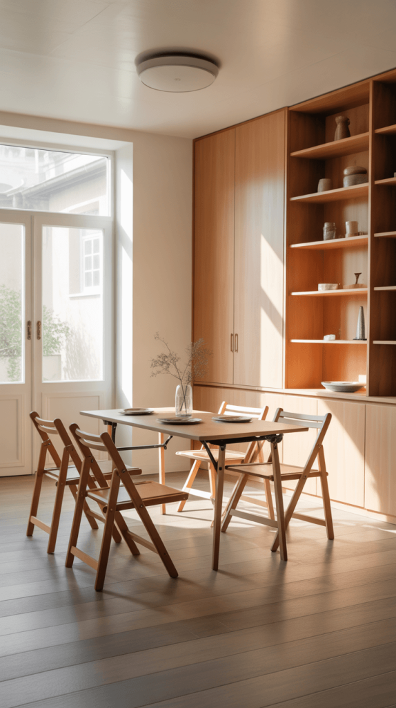 In small spaces, flexibility is key. Foldable furniture, such as fold-out dining tables or collapsible chairs, allows you to easily adapt your dining area to suit your needs.