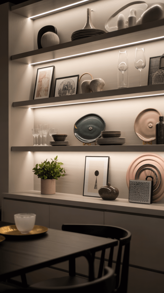 You can display your favorite tableware, glassware, or even some curated artwork on these shelves to add personality to your dining room.