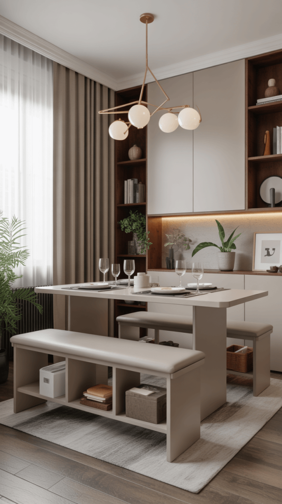 Furniture that serves more than one purpose is a lifesaver in small spaces. Look for dining tables with built-in storage or benches that double as seating and hidden storage.