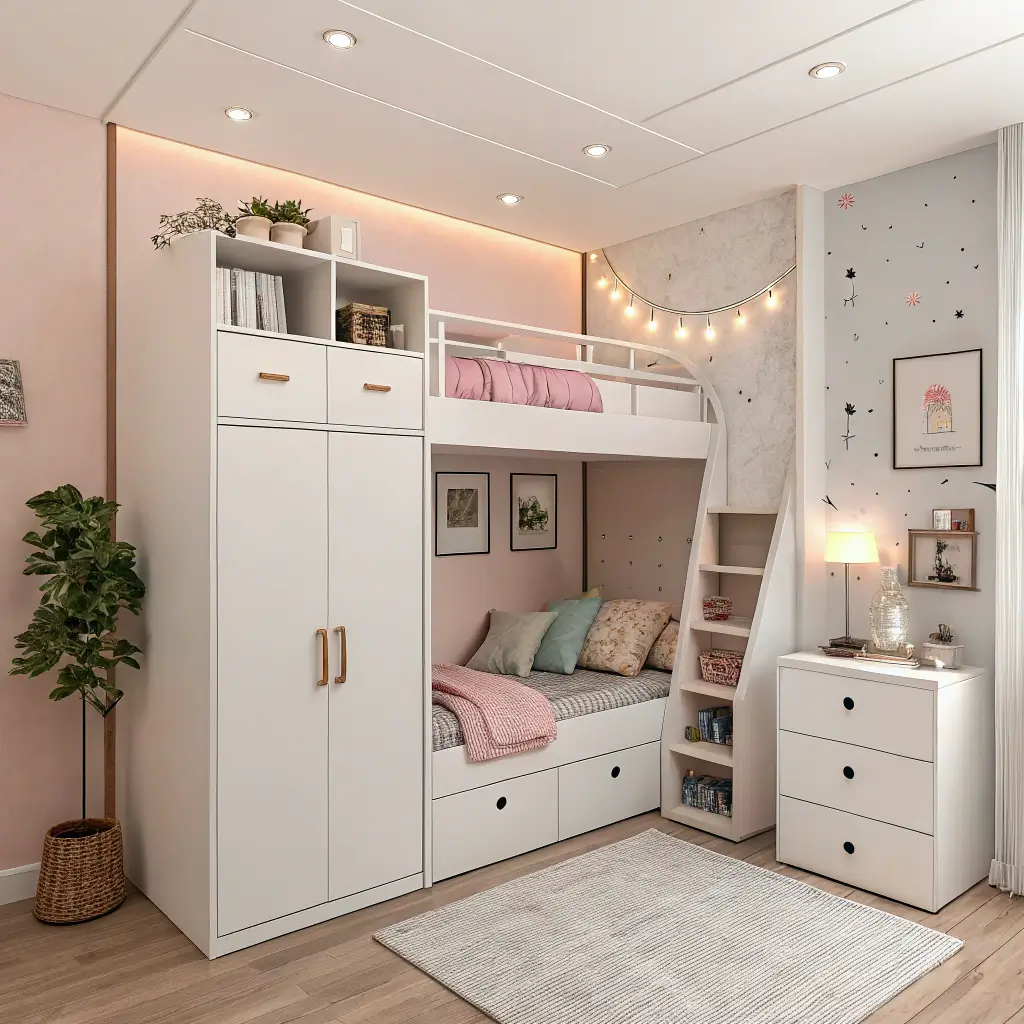 Build storage into unexpected places: hollow ottoman cubes, beds with built-in drawers, or even decorative ladder shelves that lean against the wall. Every surface should multitask in a small guest room.