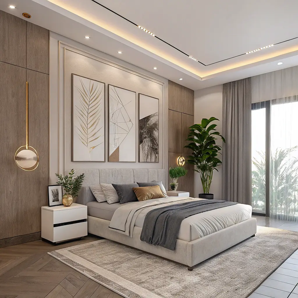Modern design loves clean lines and minimal fuss. Choose furniture with simple silhouettes and skip the frilly details. A platform bed, geometric lighting, and abstract art create that contemporary gallery feel even in the tiniest space.