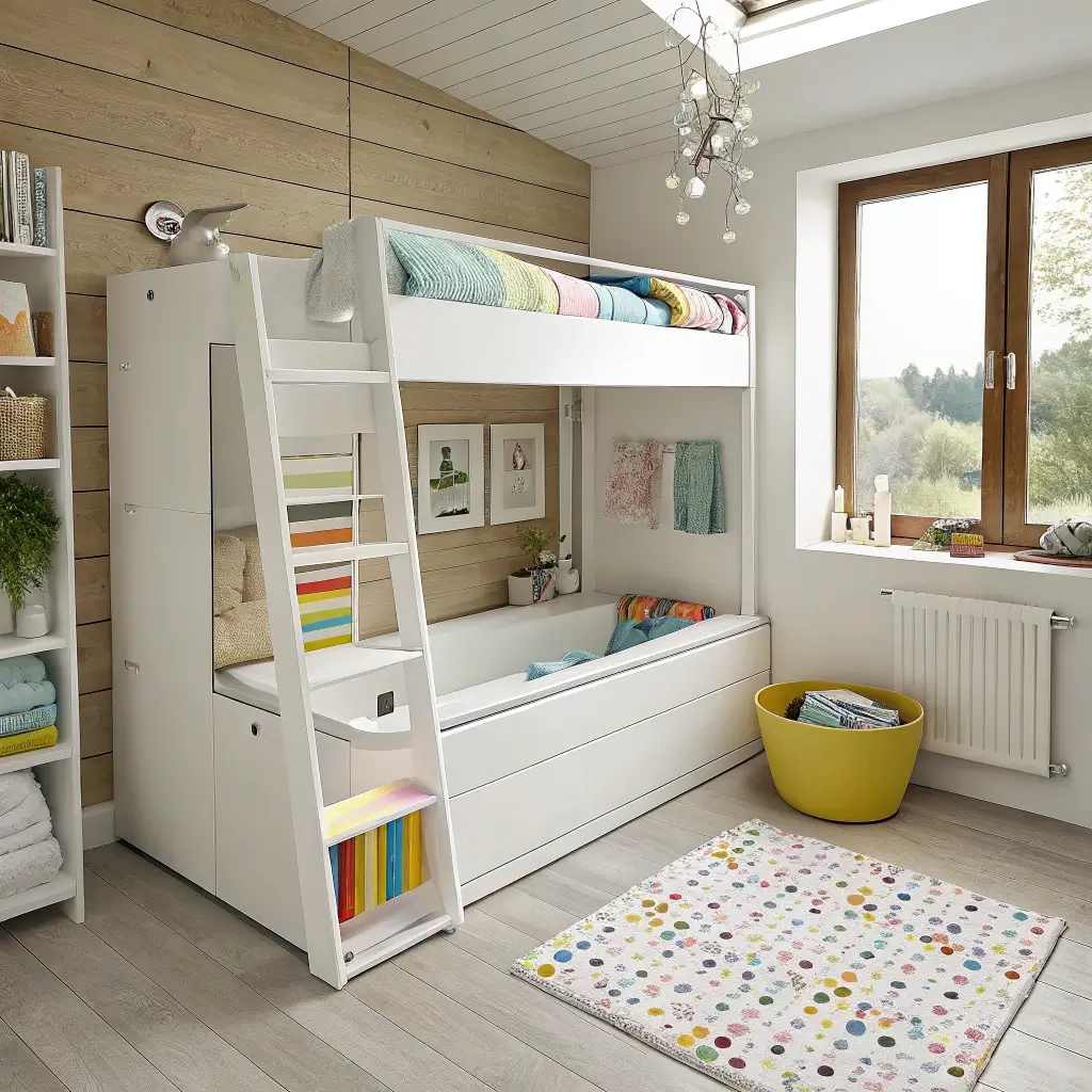 For permanent solutions, built-in cabinets maximize every inch. Include a mix of open shelving for frequently used items and closed cabinets for the stuff you’d rather hide. Add LED strip lighting underneath for nighttime navigation – kids love the soft glow, and it prevents middle-of-the-night accidents.
