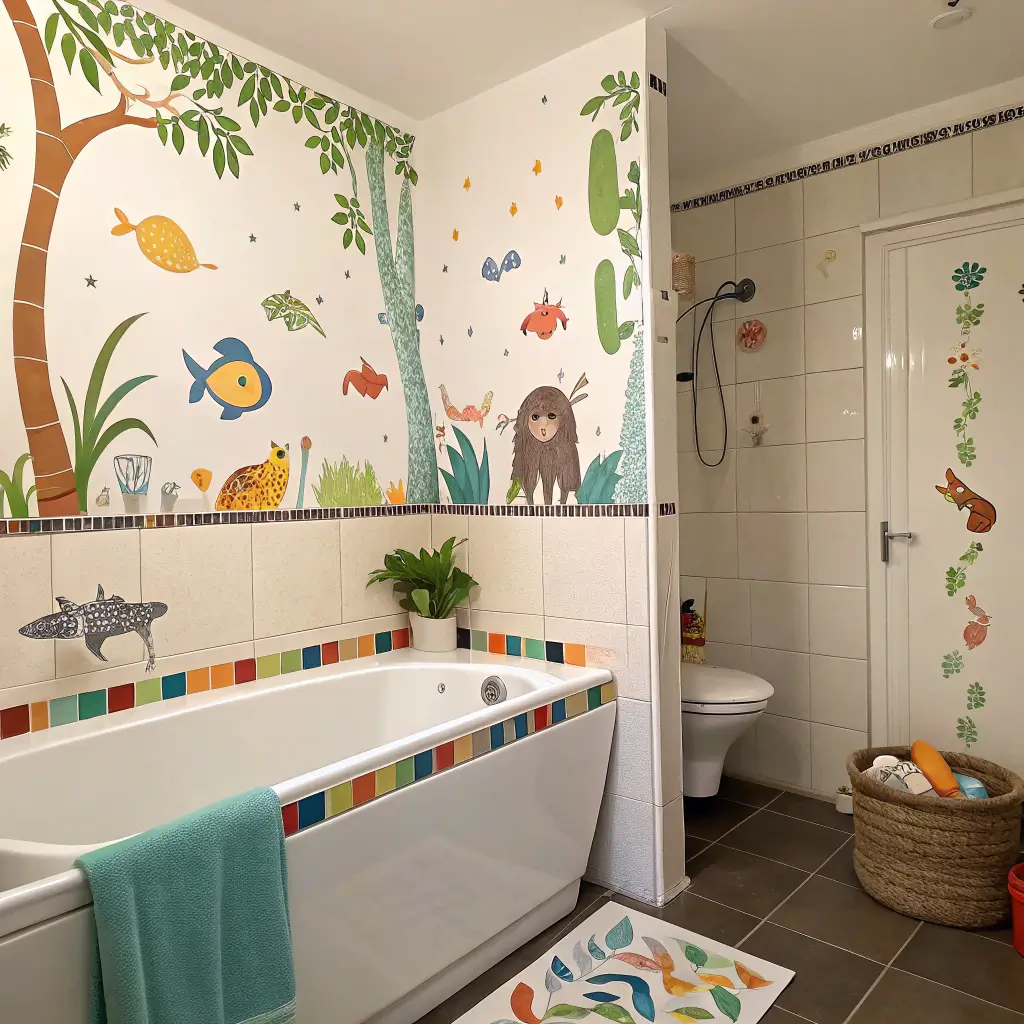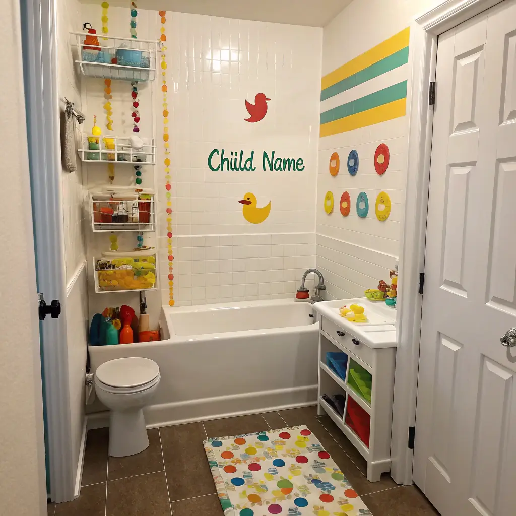 Go beyond just names though. Create entire scenes with their initials incorporated into the design. A jungle scene where their name forms tree branches, or an underwater theme where letters become fish – the possibilities are endless. Kids feel ownership over “their” bathroom, leading to better care and cooperation.