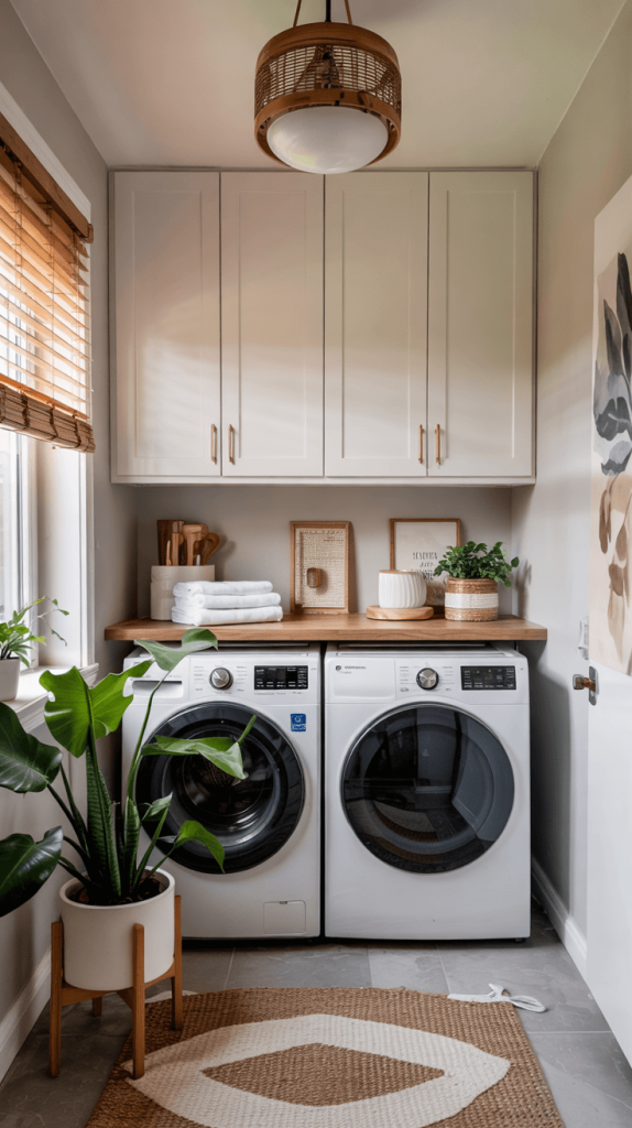 You can use a pre-cut butcher block countertop from a hardware store or have a piece of quartz or granite cut to size. Just make sure you leave a little breathing room for ventilation, especially for your dryer. This one upgrade makes the room feel infinitely more usable and professional.