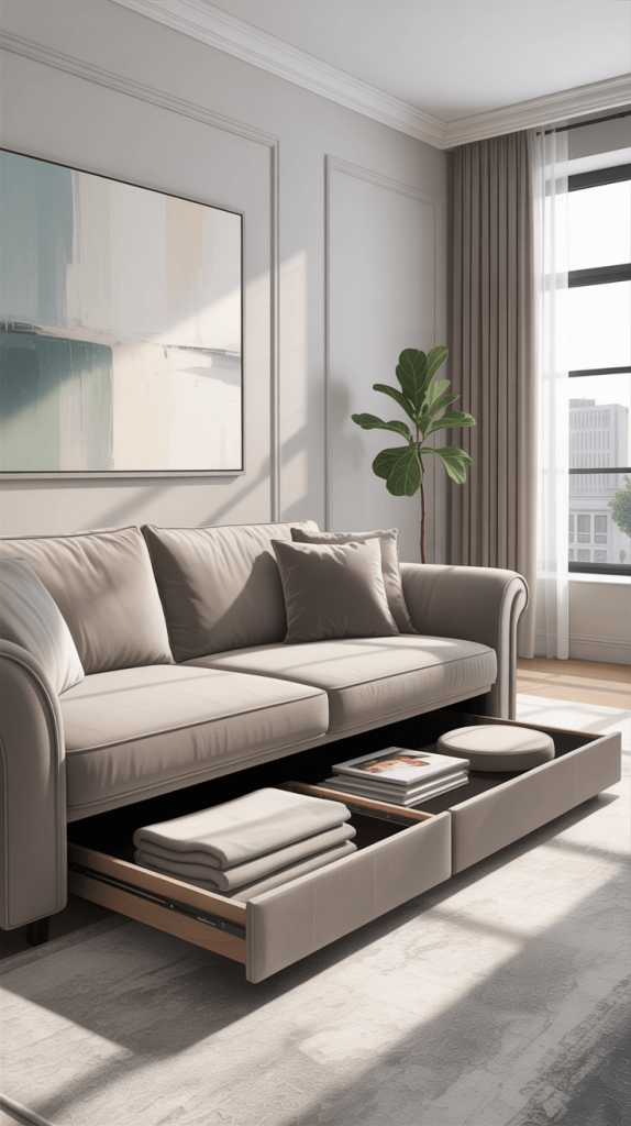 • Sofas with Storage: Some sofas come with built-in storage compartments under the cushions. It’s a perfect spot for off-season bedding or clothing.