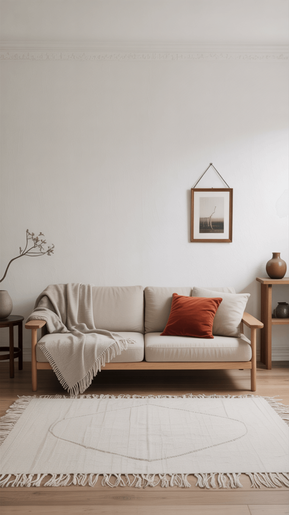 • Rugs with Low Piles: A shag rug is cozy, but it can also visually eat up floor space. A flat-weave rug (like a jute or sisal) or a low-pile wool rug feels cleaner and less imposing.