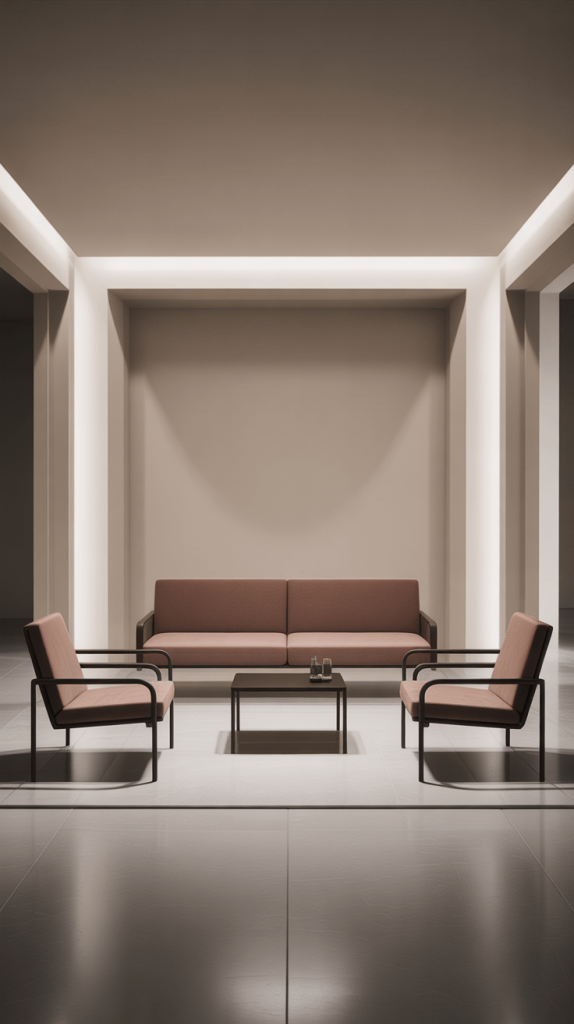 • Dark Furniture: A single, sleek, dark-colored armchair or a dark wood bookshelf can act as an anchor in the room, giving the lighter elements around it more definition.