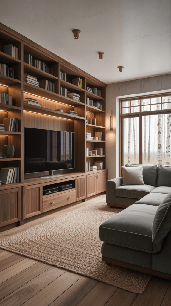• Wall-Mounted Media Units: Instead of a big, chunky TV stand, opt for a sleek, wall-mounted media console. It holds your gear but leaves a clear line of sight underneath, creating a sense of airiness.