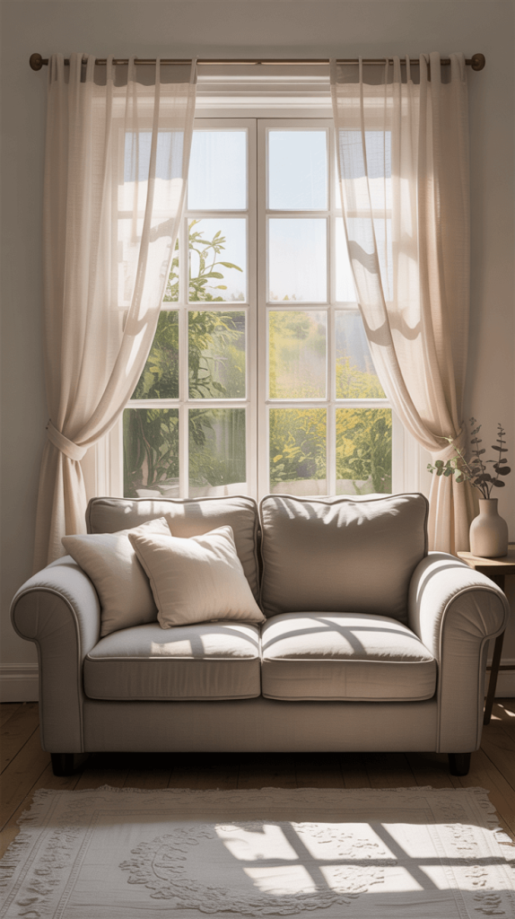 • Sheer Curtains: Instead of blackout curtains (unless you need them for sleeping), opt for light, gauzy sheers. They provide privacy while still letting in beautiful, diffused light and feeling weightless.