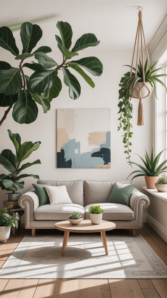 • Small Tabletop Plants: A little succulent or a pilea on a side table adds a touch of life without any commitment.