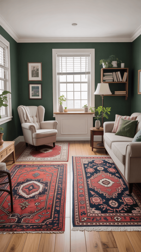 • The Power of the Rug: An area rug instantly defines a seating area. Even if your “living room” is just a corner of a studio apartment, placing a rug under your sofa and chair will visually cordon that area off as its own dedicated zone.