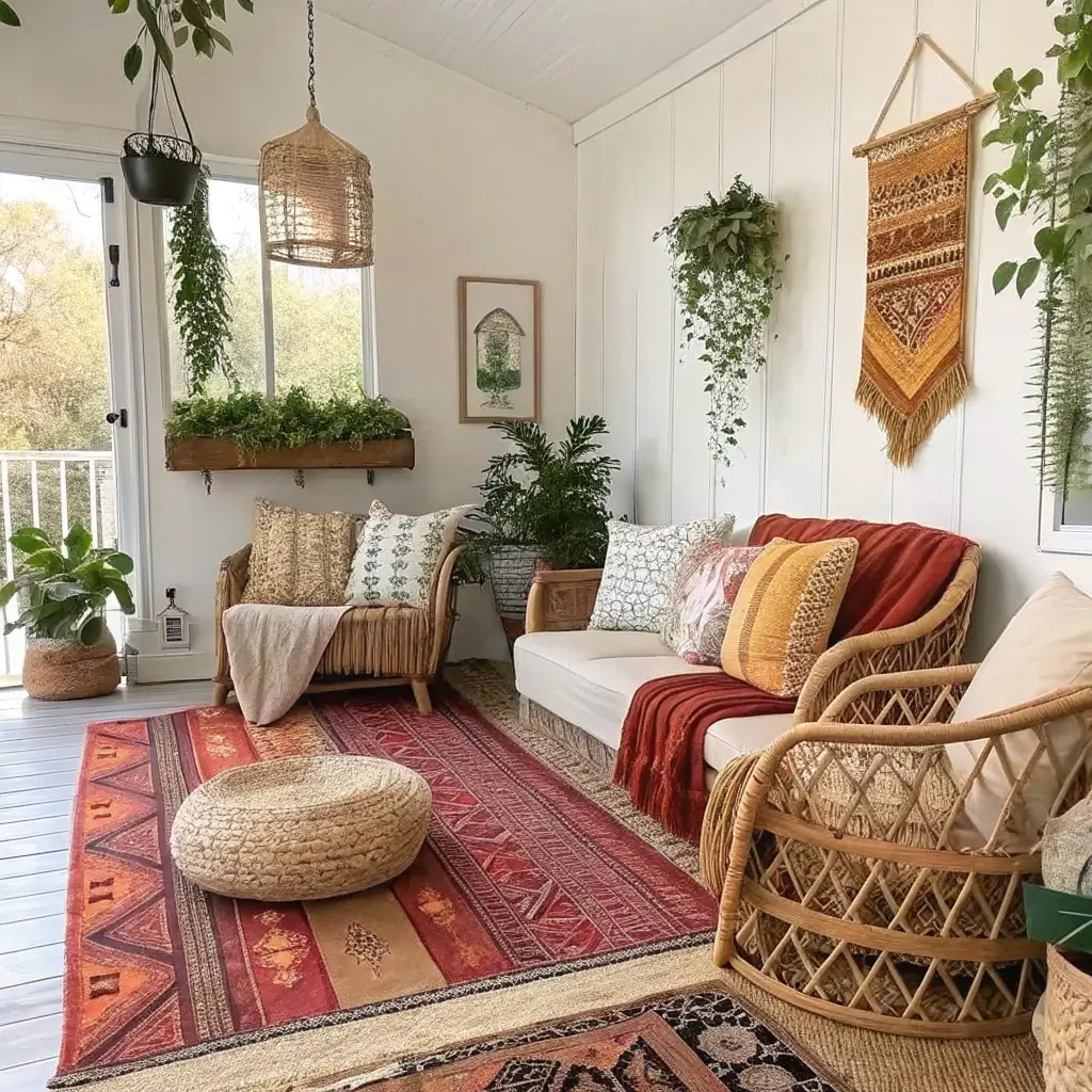 Now, if minimalism makes you yawn, let’s talk boho chic. This style basically says “rules are meant to be broken” – and I’m here for it. The bohemian approach lets you layer patterns, textures, and colors in a way that somehow just works.