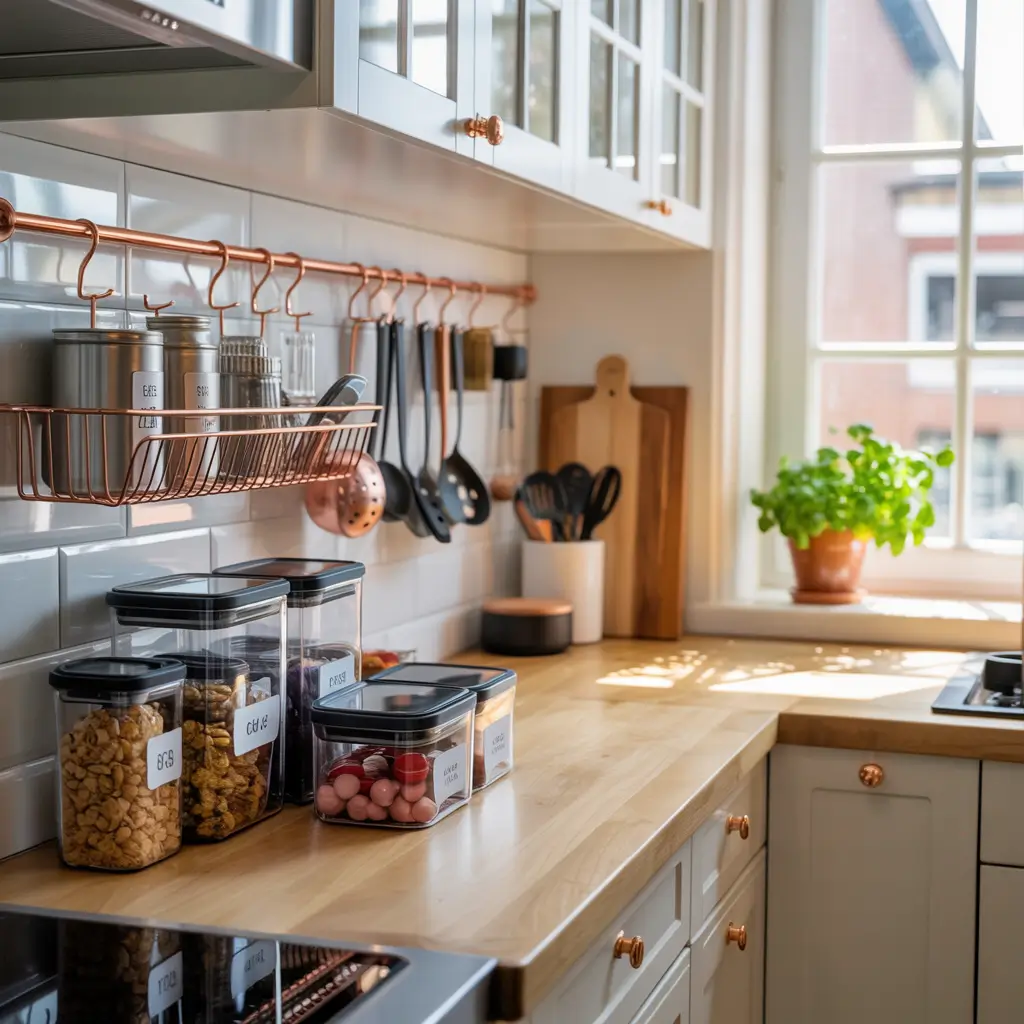 Organization in a tiny kitchen isn’t optional – it’s survival. Every item needs a designated home, or chaos ensues faster than you can say “where’s my can opener?”