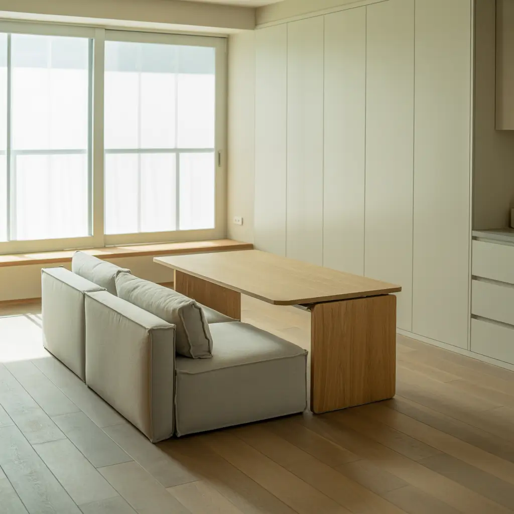 My dining table folds completely flat against the wall when I need floor space for yoga. The modular sofa sections rearrange for movie nights versus dinner parties. Even my kitchen has a fold-down breakfast bar that disappears when not in use.