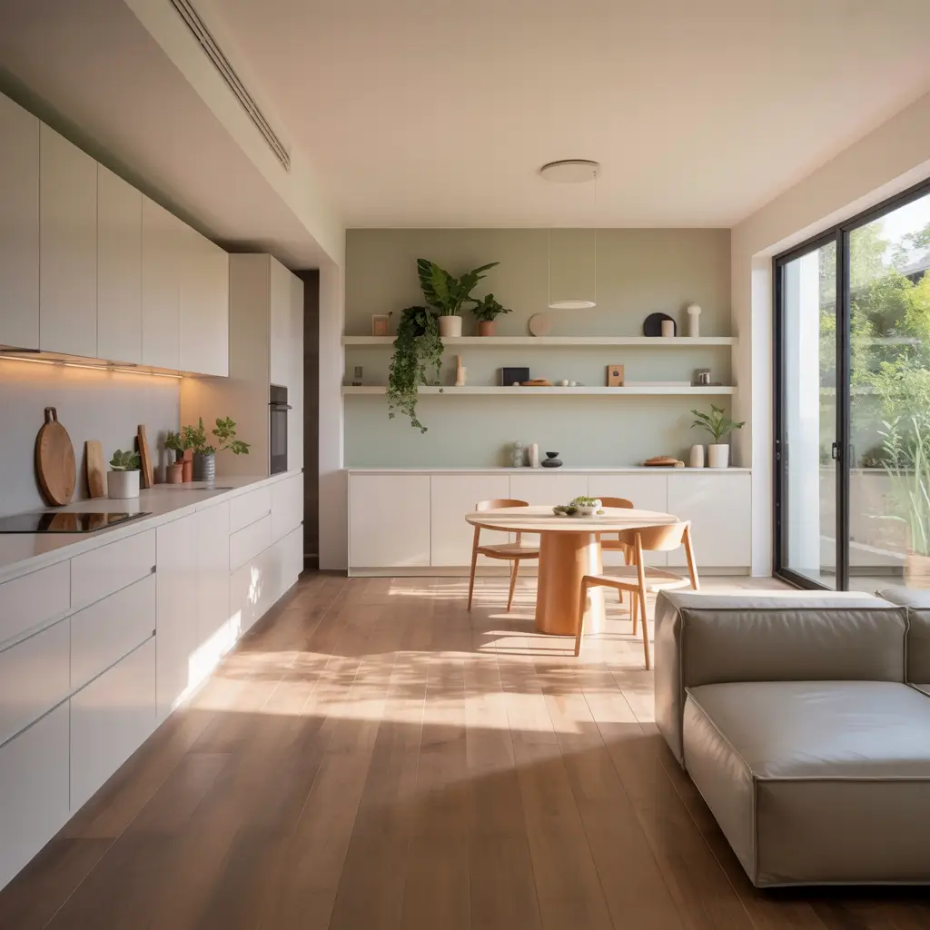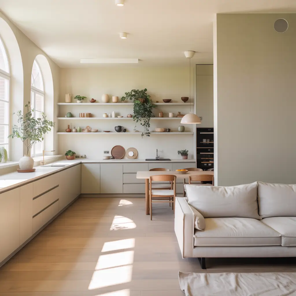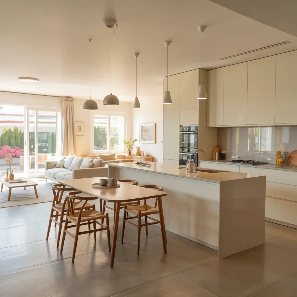Orient your layout around natural light sources â€“ place your dining area near windows for bright morning meals, and keep window treatments minimal. Sheer curtains or adjustable blinds give privacy without sacrificing light.