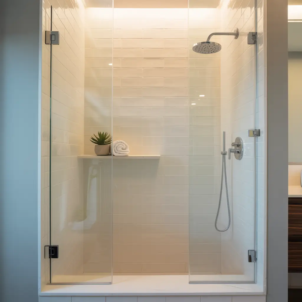 Minimalist showers focus on clean lines and simple materials. Think single-tone tiles, wall-mounted fixtures, and built-in niches instead of hanging caddies. The less visual clutter, the bigger the space feels.