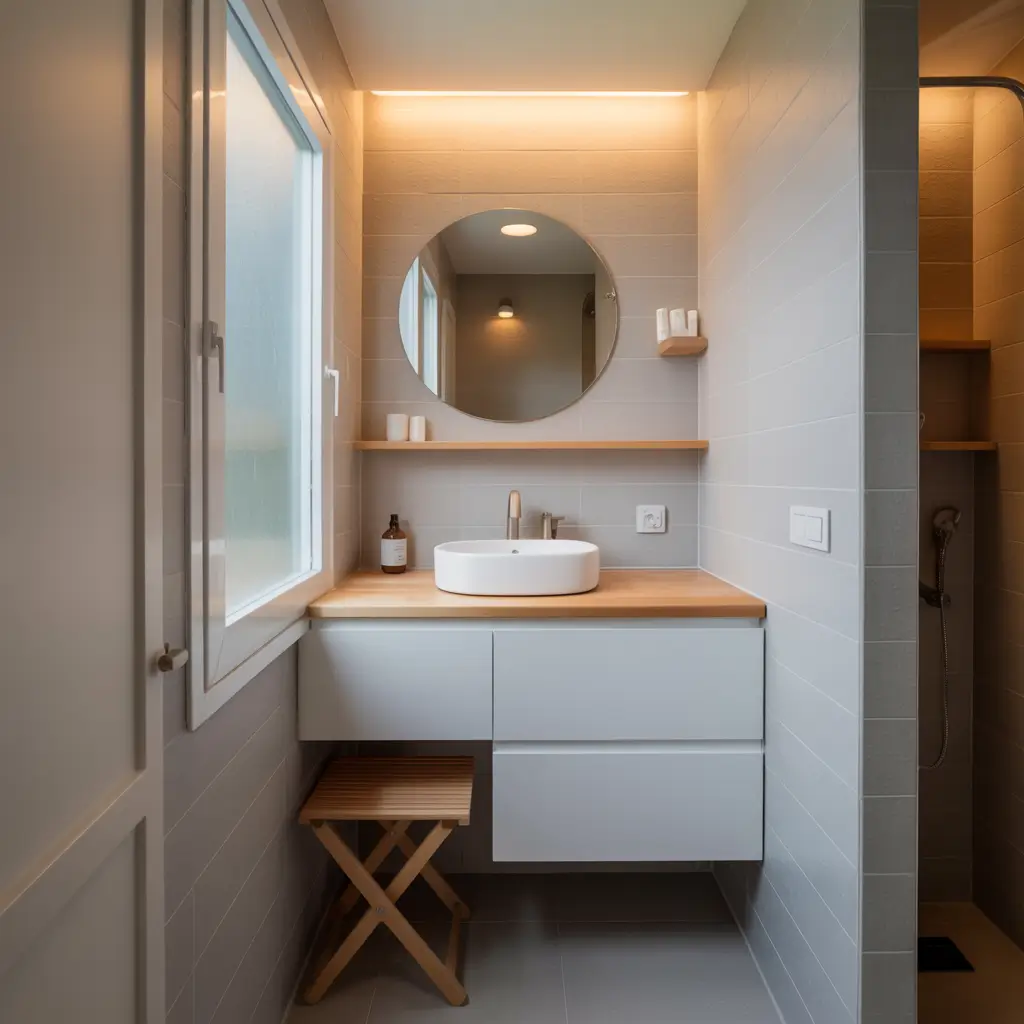 I installed a mirror cabinet that looks like a regular framed mirror but opens to reveal shelves for all my skincare products. Guests have no idea it’s there, which keeps the bathroom looking uncluttered and spacious.
