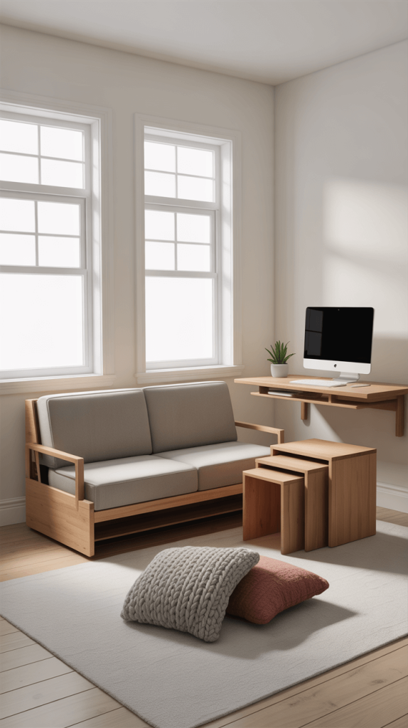 - Nesting Tables: Instead of one large coffee table, use a set of nesting tables. You can pull them out when you need extra surface area for game night or drinks, and tuck them neatly away when you don’.