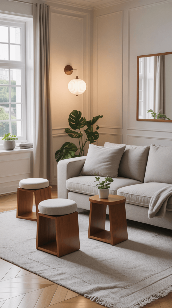 - Stools & Ottomans: Poufs, small stools, and even those storage ottomans we talked about can be pulled out for extra perches. They’re soft, movable, and easy to stash under a console table when the party’s over.