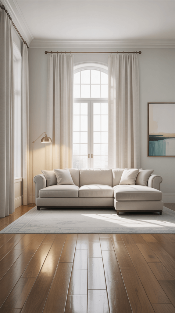 It’s a ridiculously simple hack that costs nothing extra but completely changes the proportions of your room. Use light, airy fabrics like linen or cotton to keep the vibe soft and flowing.