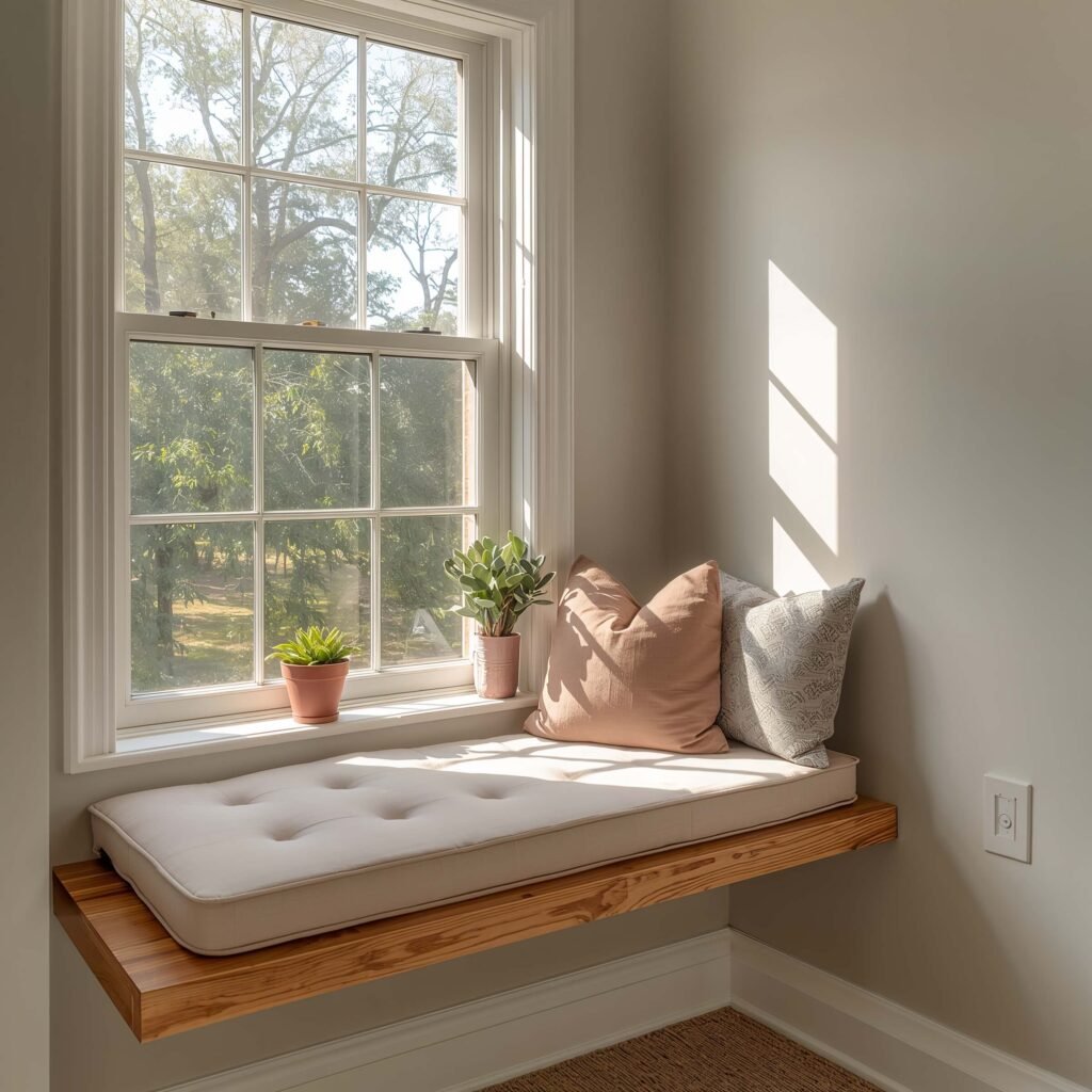 You don’t need a bay window or architectural marvel to pull this off. Even a regular window can become study central with these additions: