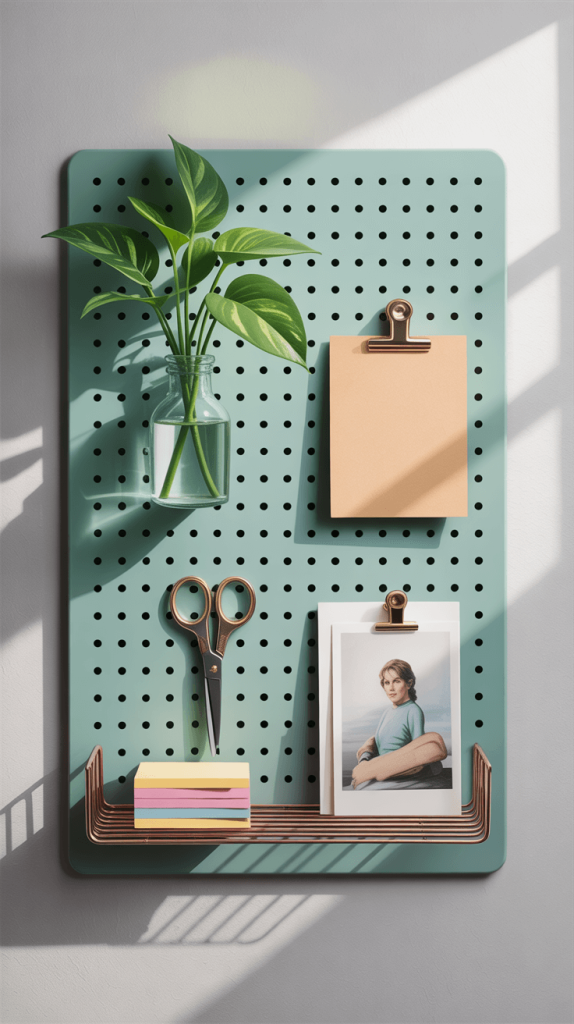 It is the ultimate in functional decor. It organizes your stuff and looks cool doing it. Perfect for a home office corner, a craft nook, or even a bathroom to hold towels and supplies. You can paint the pegboard any color to match your decor.