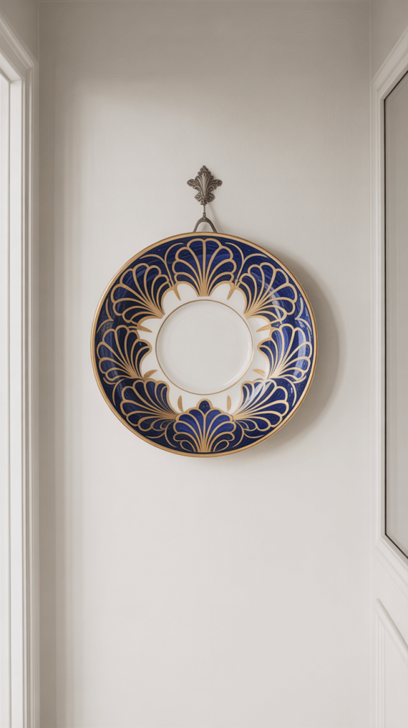 Don’t just grab a dinner plate from your cupboard. Head to a thrift store, an antique market, or even a home goods store and look for a plate that stands alone as art.