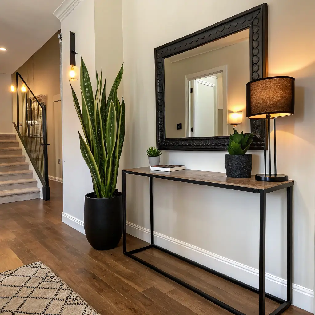 2. Modern Entryway Snake Plant Decor Setup
