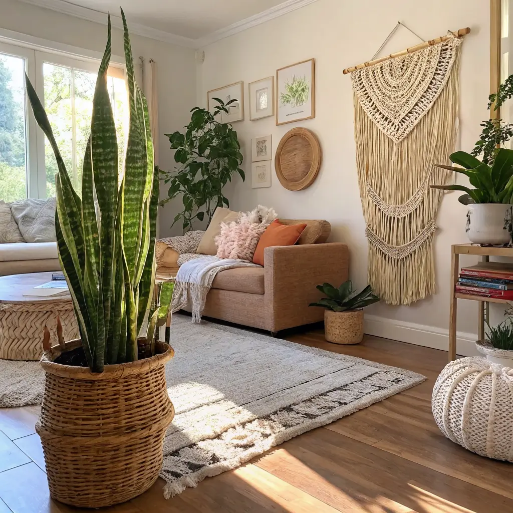 3. Boho Living Room Snake Plant Aesthetic