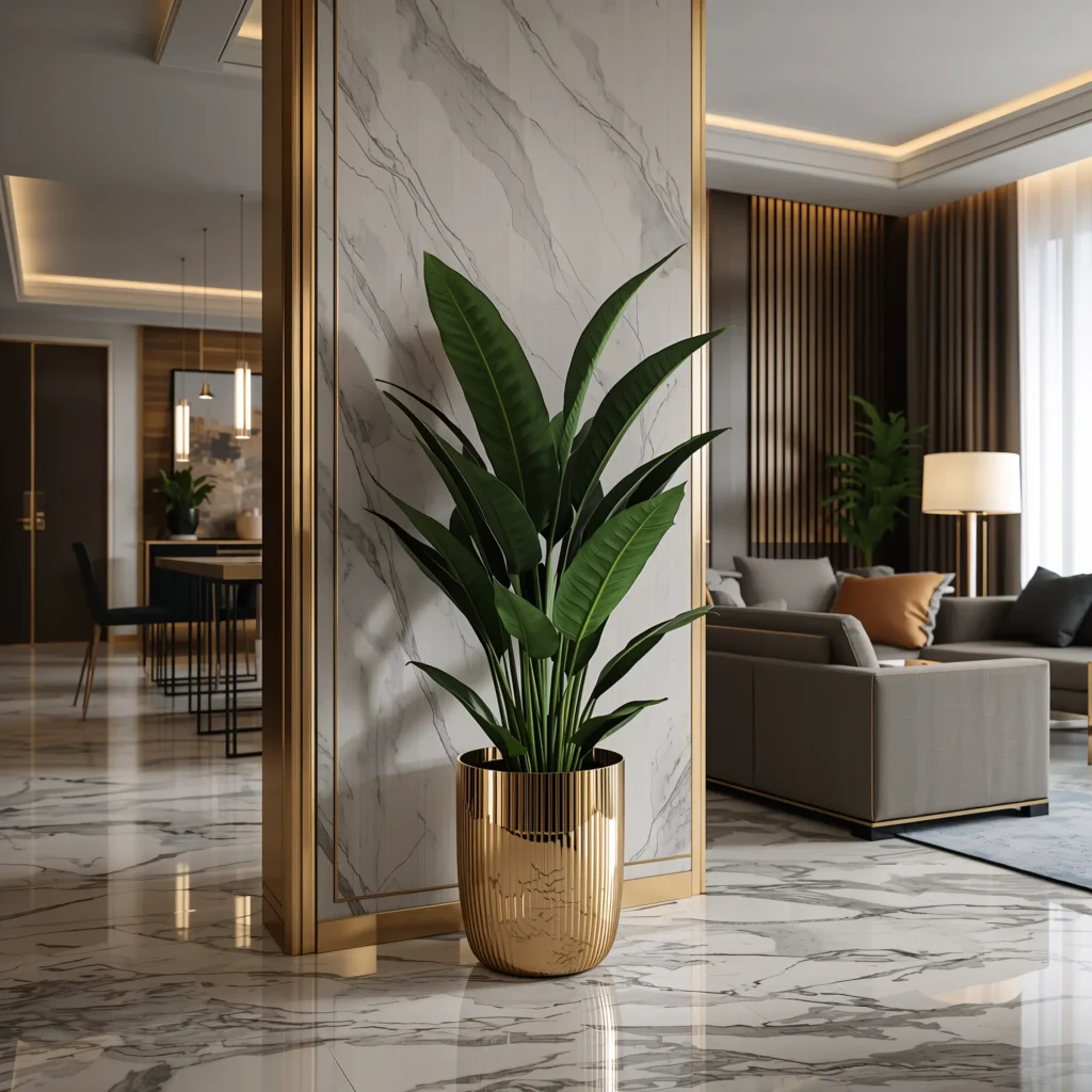 I’m talking about those gorgeous oversized planters – think sleek fiberglass, polished ceramic, or even marble-look containers. When you pair them with mature snake plants (the ones with thick, tall leaves), you create an instant focal point that screams expensive taste.