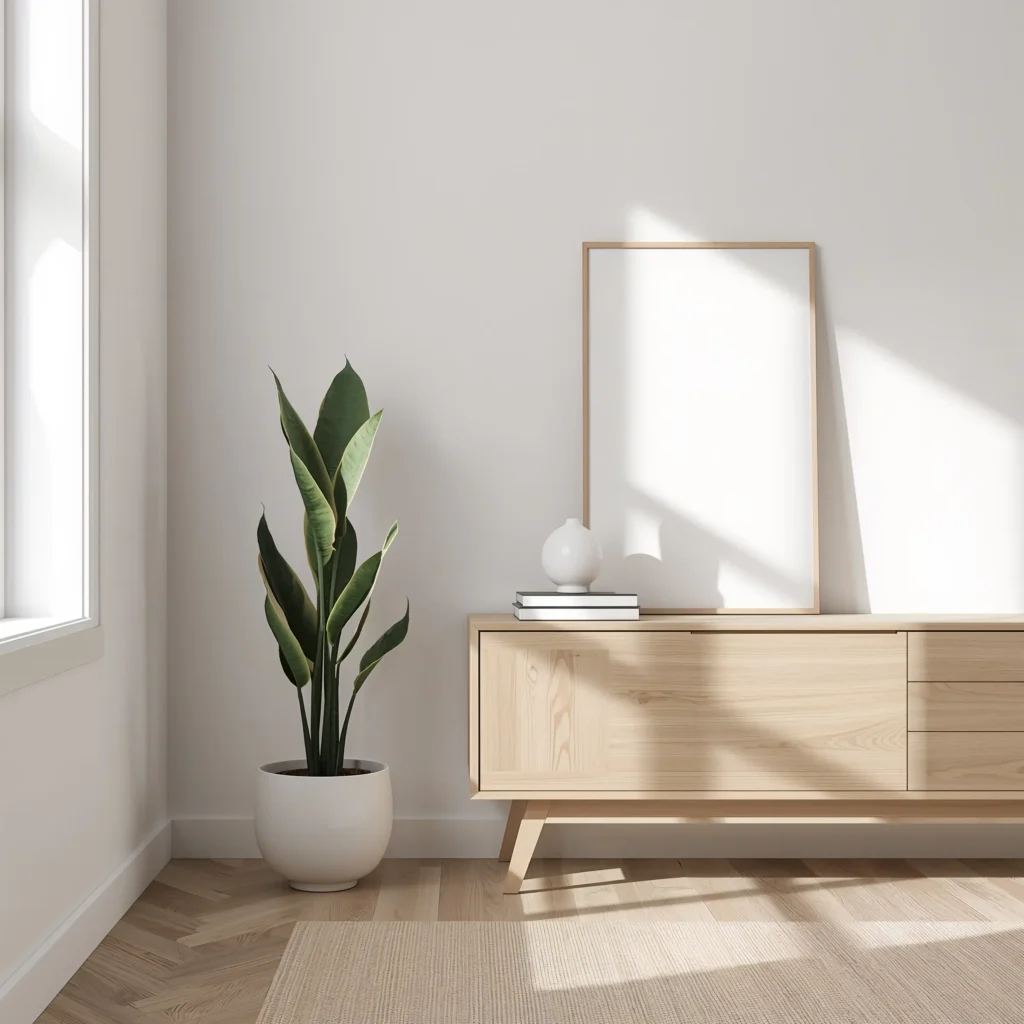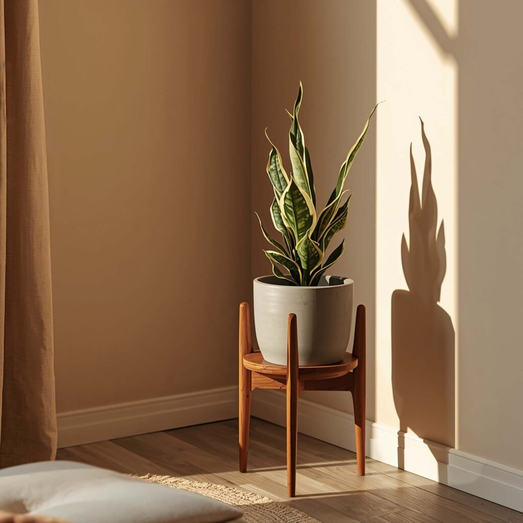 1. Minimalist Corner Snake Plant Styling