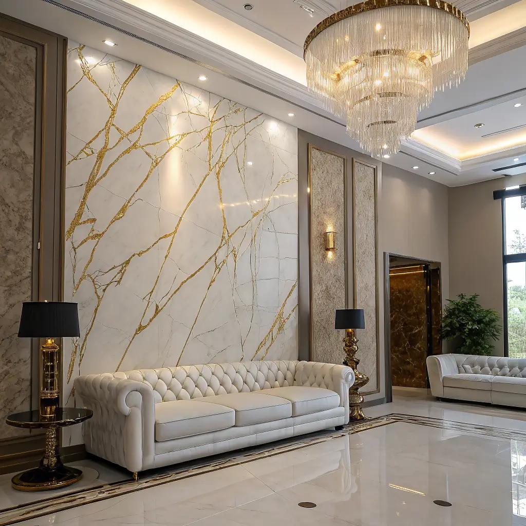 Luxury Marble Accent Sofa Wall Design Ideas